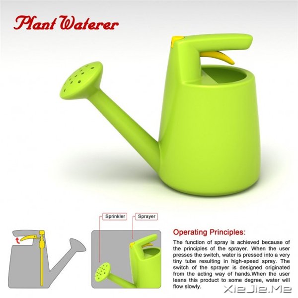 喜欢养一些花花草草,又不是经常打扫的孩纸。有福利了哈,今天给大家介绍的这个喷水清洁两用水壶是由广州美术学院的设计师叶晋豪(Jinhao Ye)带来的概念作品,使用普通的洒水功能,洒水器会让丰盈的水分迅速渗透到植物的根部,使用喷雾功能呢,则可以将植物表面的脏东西清理干净。